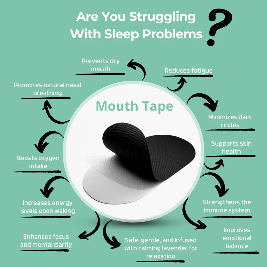Our Anti-Snore Mouth Tape is a game-changer. It gently keeps your lips closed to promote natural nasal breathing, helping you sleep deeper, snore less, and wake up truly refreshed. No gadgets, no noise—just better sleep with one simple strip.